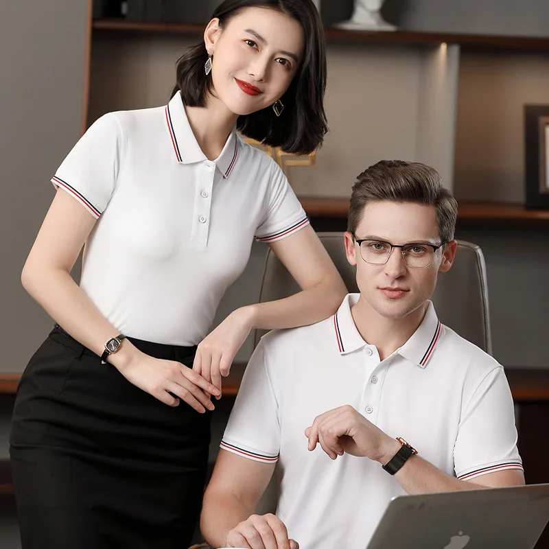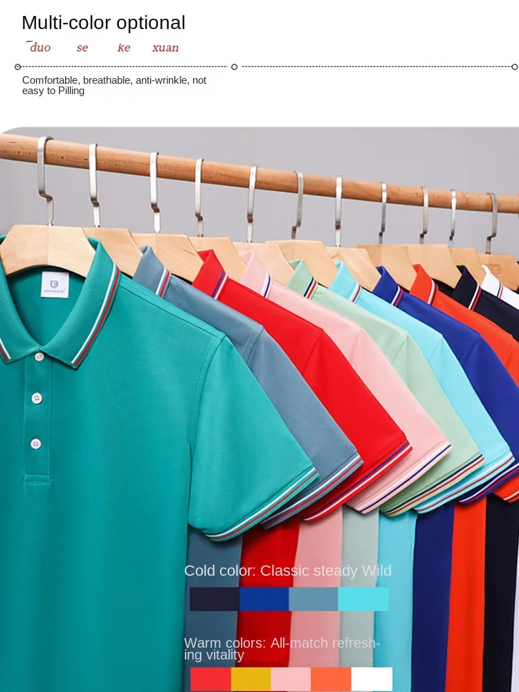 High-End 100% Polyester for Polo Shirt Embroidered Design Corporate Group Short Sleeve T-Shirt Solid Pattern Cultural